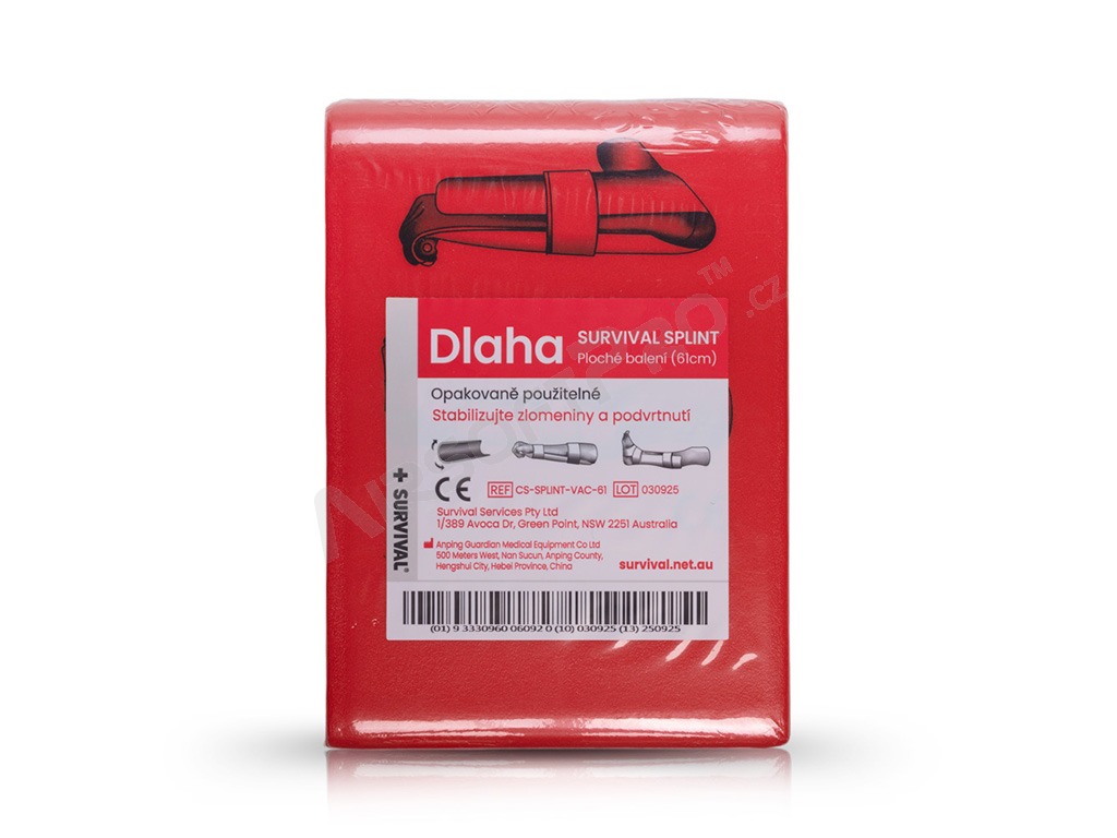 Jedným z kľúčových prvkov Slimline Kitu je SURVIVAL dlaha (Splint). Ľahká, tvarovateľná a odolná, určená na pevné znehybnenie poranenej končatiny. Spoločne so SMART Bandage™, návodom na ošetrenie zlomeniny a fixačným materiálom tvorí kompletnú sadu na zvládnutie výronov a zlomenín priamo na mieste.