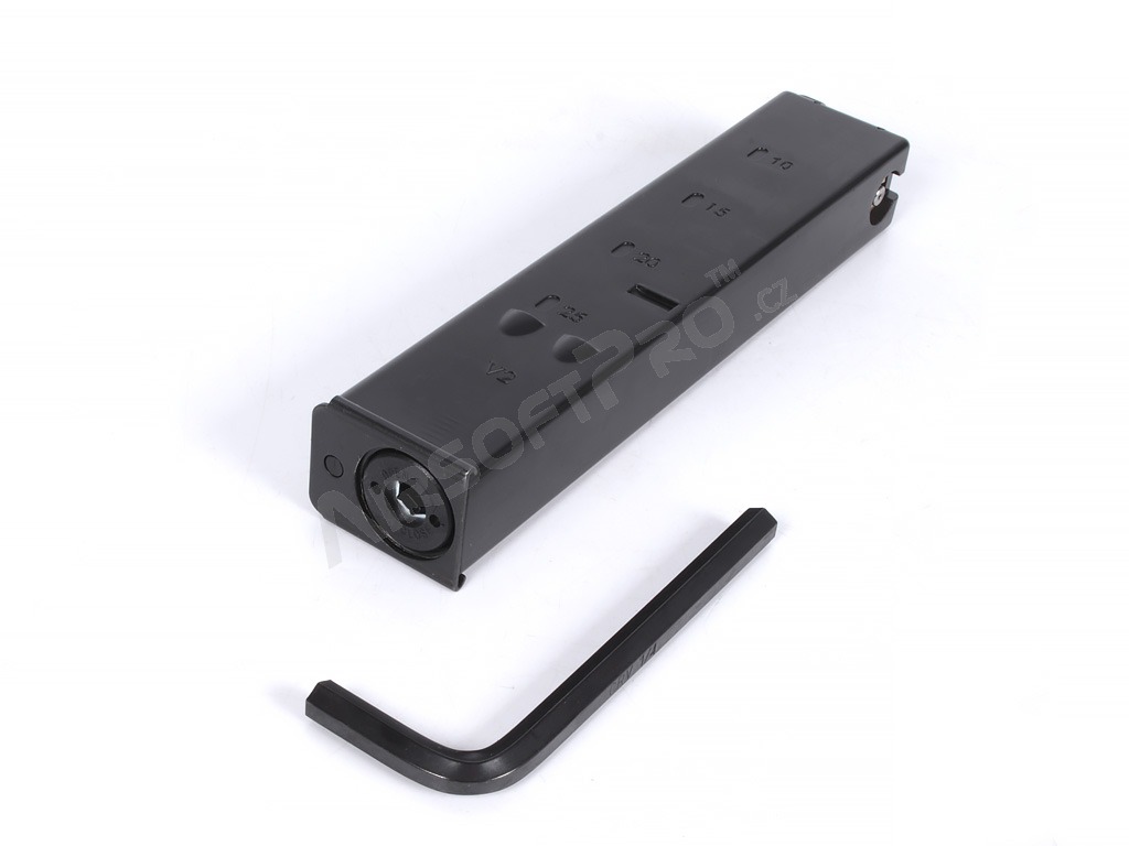 CO2 zásobník pre KWC airsoftový samopal Mini UZI [KWC] Celokovový CO2 zásobník pre plynovú pištoľ KWC Mini UZI.