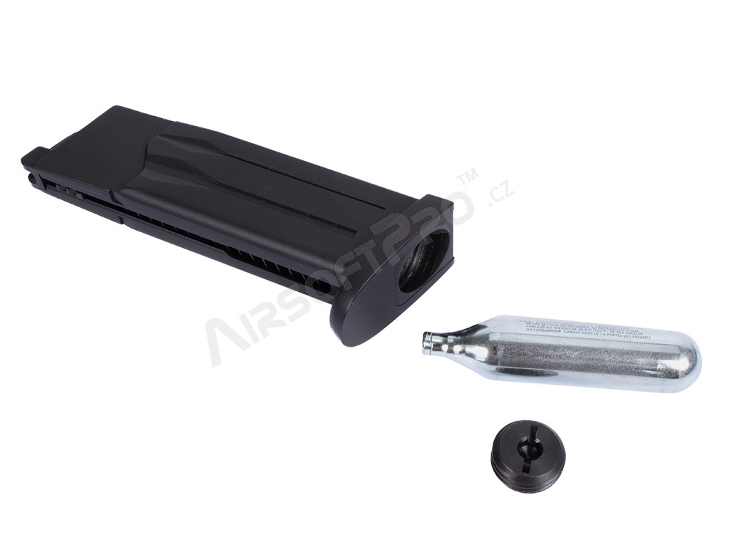 CO2 zásobník pre airsoftové pištole MK23 Socom bez blowbacku. Je celokovový a má kapacitu 26 guličiek. Je poháňaný 12 g CO2 bombičkou. Zásobník je vhodný pre pištole:
